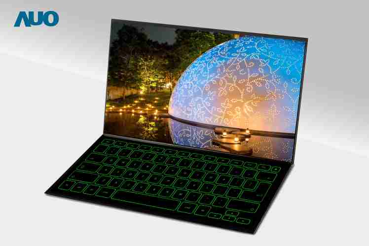 人生就是博本次展出 15.6吋双螢幕笔电,,其中一面螢幕利用高反射光学膜,,,,能在省电的状态下呈现出键盘样式,,而非一般待机黑色画面,,,结合触控功能后即能将这面螢幕切换为键盘,,,提升商务笔电多元使用情境。。。。亦可延伸应用此技术于其他显示器,,,以客制化待机画面融入周边环境,,,成为装置艺术,,达成一致性的美观效果。。。
